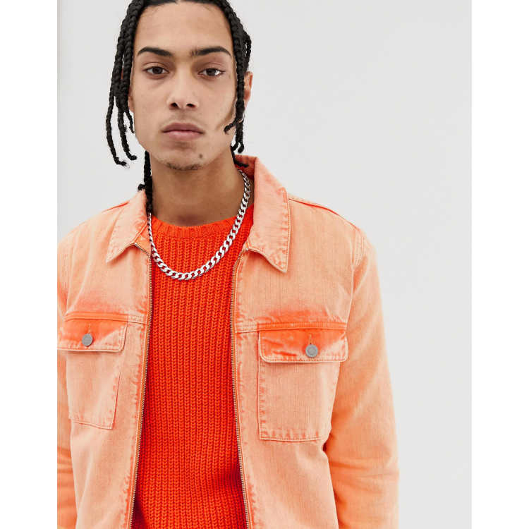ASOS DESIGN Veste en jean fermeture clair Orange fluo ASOS Very well made.