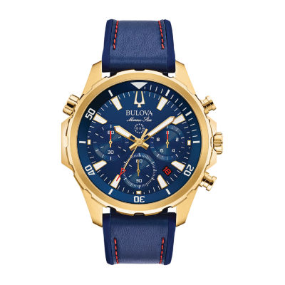 Bulova Marine Star Mens Blue Leather Strap Watch 97b168 Very well made.