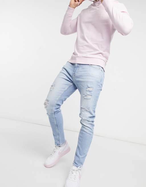 Bershka premium super skinny fit jeans with rips in blue Very well made.