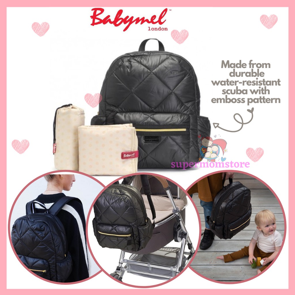 Babymel Luna Ultra Lite Backpack Black Quilt Normal Price RM339 Premium Exclusive Baby Diaper bag Shopee Malaysia Very well made.