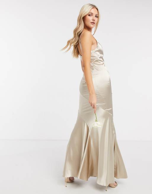 ASOS DESIGN Bridesmaid satin scoop maxi dress with panelled skirt and button back ASOS Very well made.