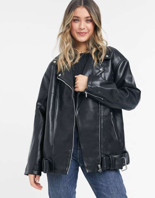ASOS DESIGN Blouson style motard long et oversize en imitation cuir Noir Very well made.