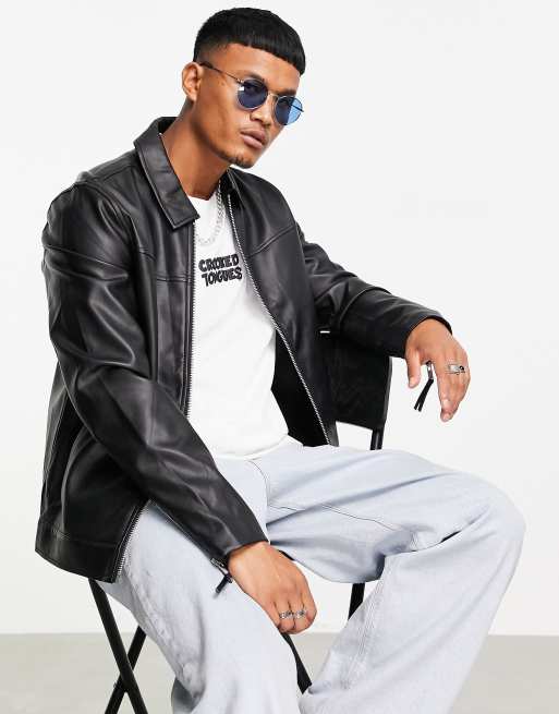 ASOS DESIGN Veste d entra neur courte oversize en imitation cuir Noir Very well made.
