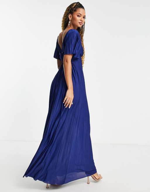 ASOS DESIGN pleated twist back cap sleeve maxi dress in navy ASOS Very well made.