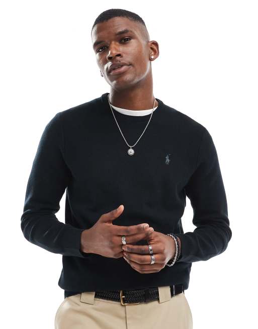 Polo Ralph Lauren tonal icon logo cotton knit sweater in black Very well made.