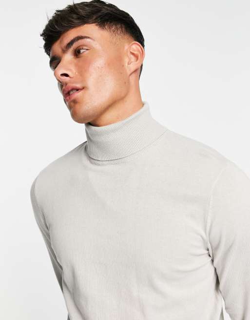 ASOS DESIGN knitted cotton roll neck jumper in light grey Very well made.