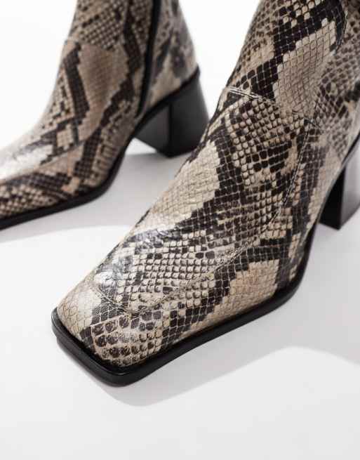 ASOS DESIGN Eden high heeled platform boots in snake ASOS Very well made.