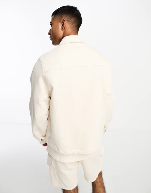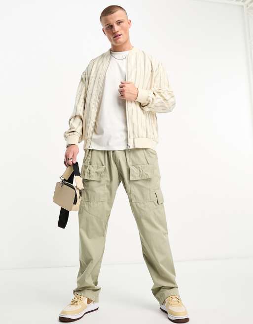 ASOS DESIGN oversized linen look summer bomber jacket with navy stripe ASOS Very well made.