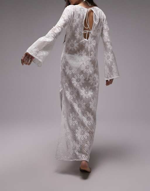 ASOS DESIGN jacquard cut out ruched beach maxi dress in ivory Very well made.