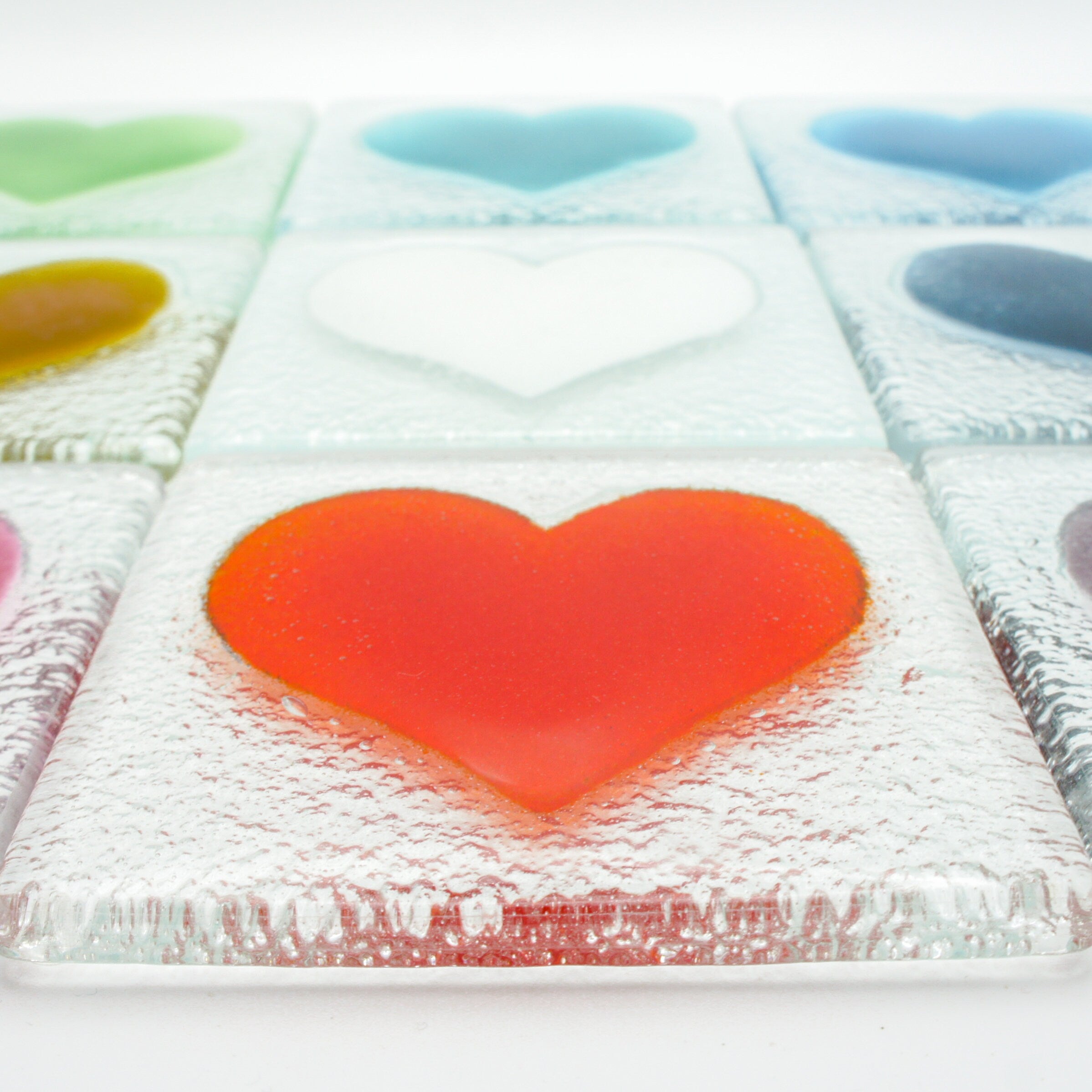 4 Heart Handmade Fused Glass Coasters 10x10cm 4x4 Choose your colours fused glass heart coasters Very well made.