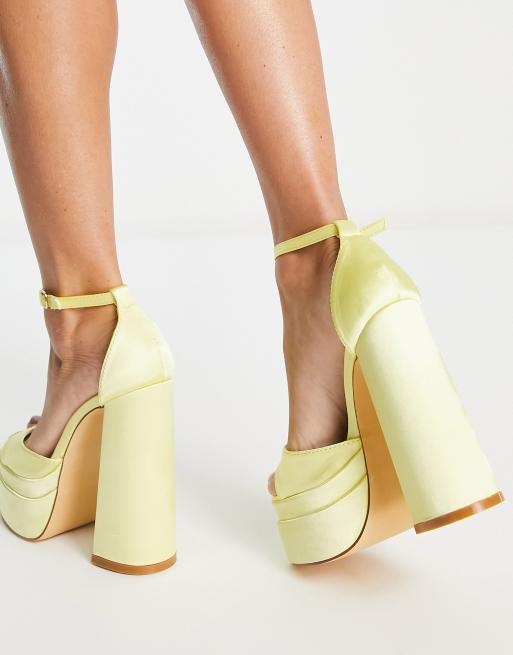 Glamorous Wide Fit platform heeled sandals in lemon satin Very well made.