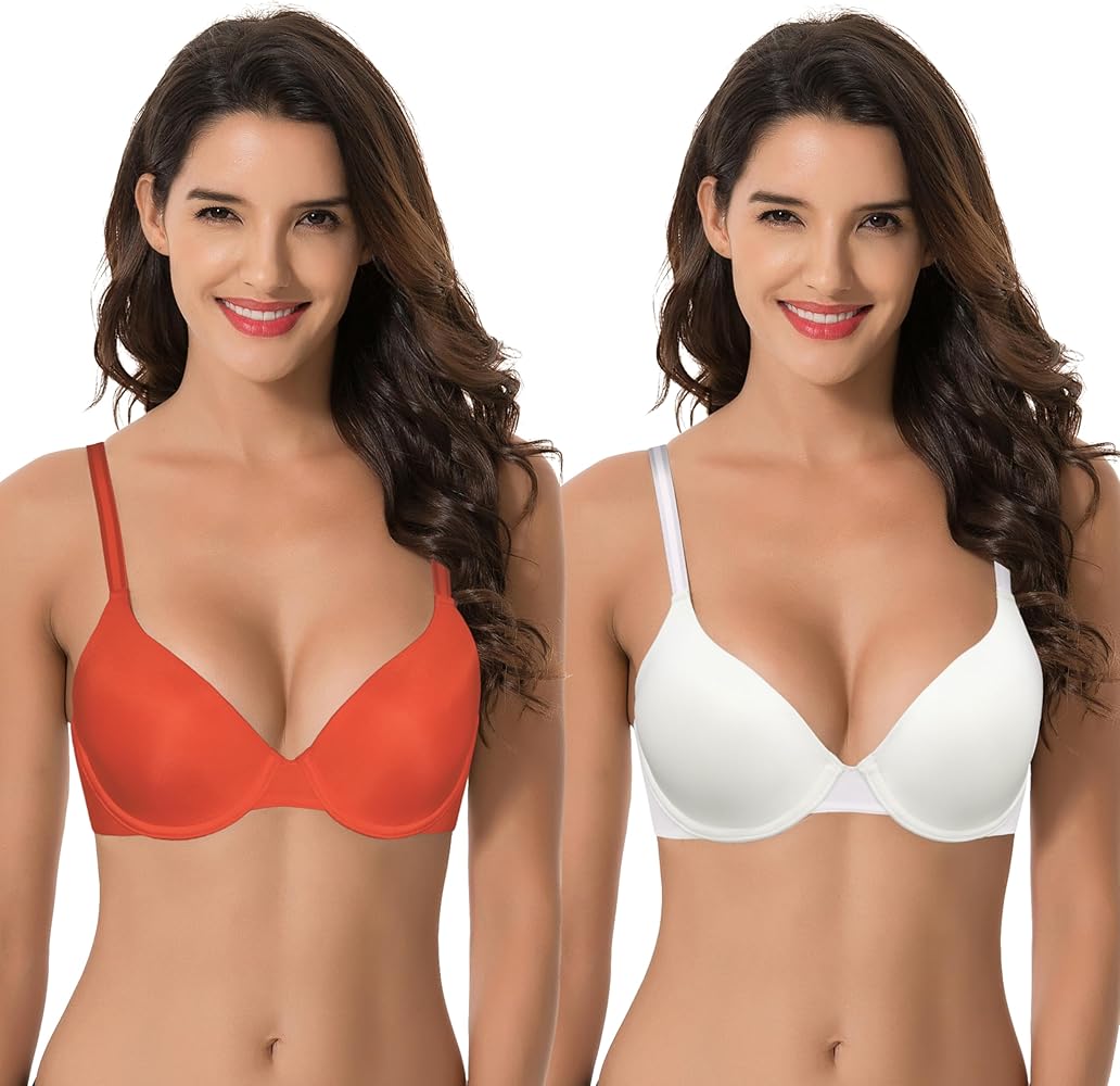 Curve Muse Women s Plus Size Full Coverage Padded Underwire Bra 2PK Ivory Flame 46C EU 105C Amazon Fashion Very well made.