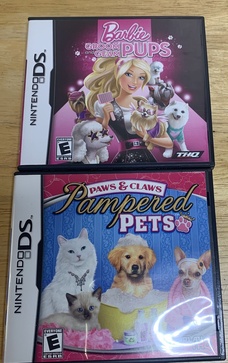 Nintendo DS Game Bundle Barbie Groom Glam Pups Paws Claws Pampered Pets Very well made.