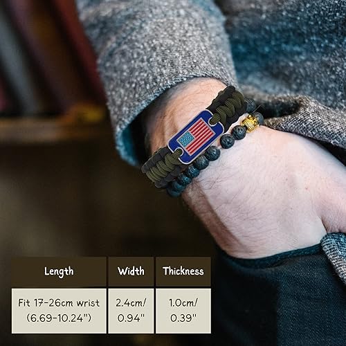 VAYOBOO Paracord Bracelet USA Flag Proud Bracelets Multipurpose Adjustable Braided Tactical Survival Paracord Bracelet Army Military Veterans Patriotic Bracelets for men Green Black in Oman Whizz Surv... Very well made.