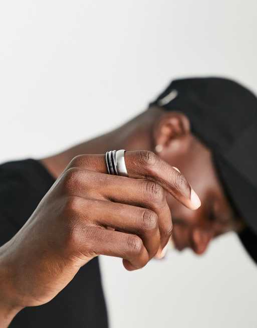 ASOS DESIGN 3 pack waterproof stainless steel band ring set in silver tone Very well made.