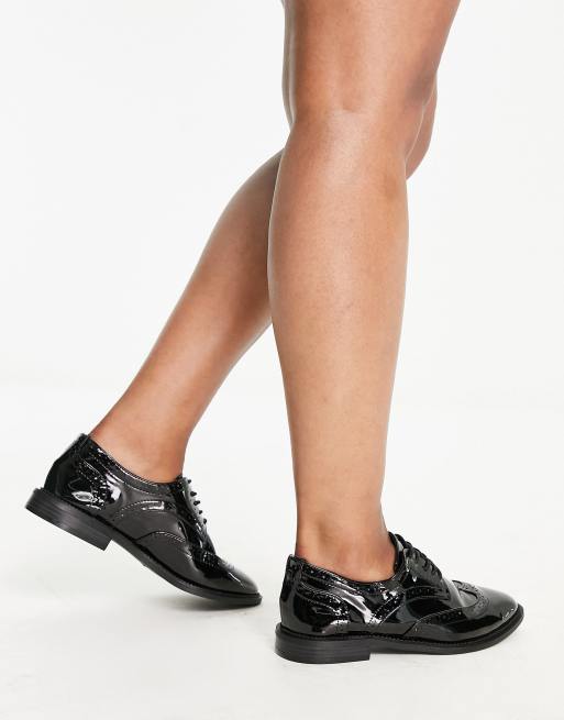 ASOS DESIGN Wide Fit More flat lace up shoes in black Very well made.