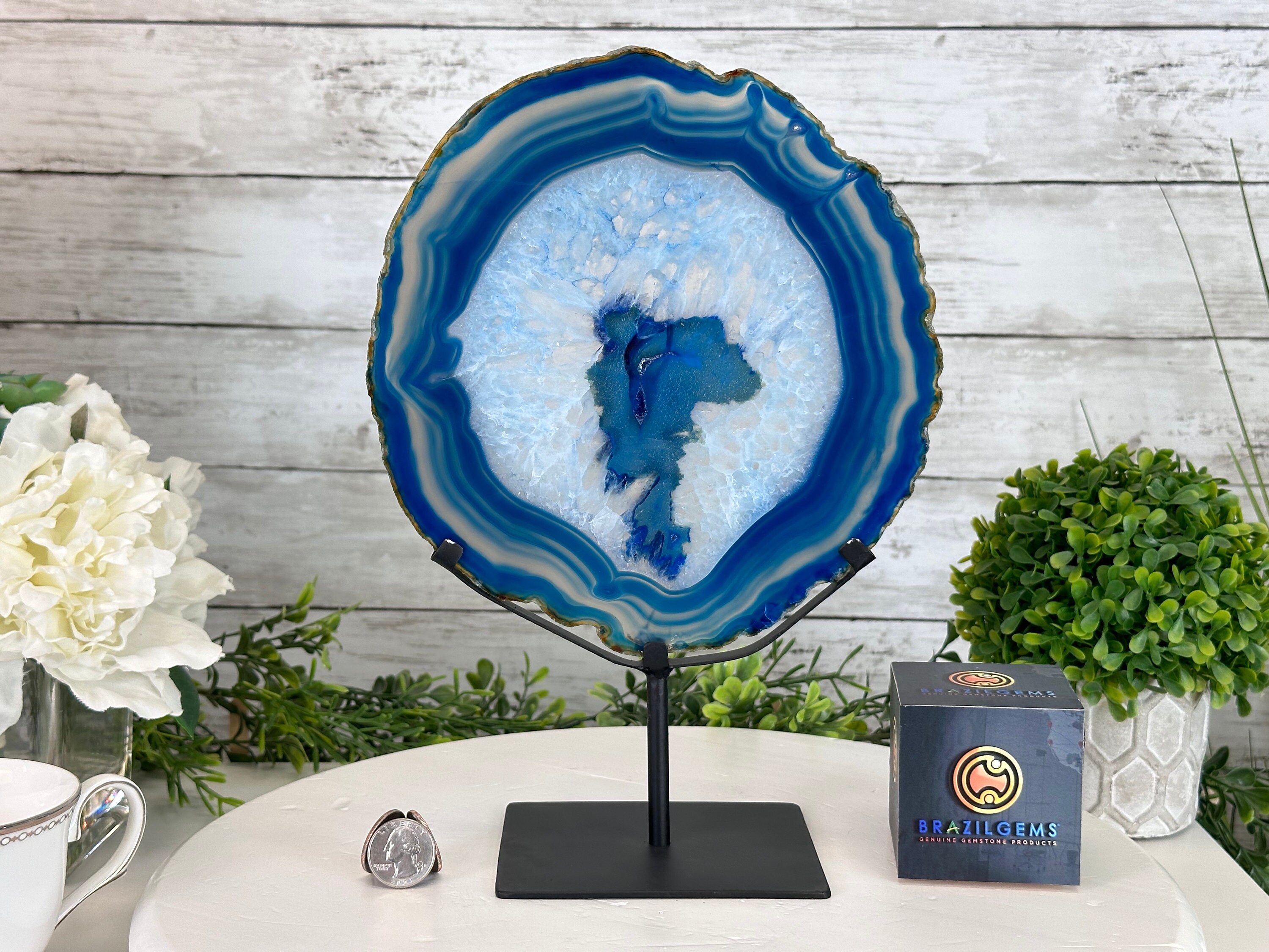 Blue Brazilian Agate slice on metal base by Brazil Gems 5055 0134 Brazil Gems Very well made.