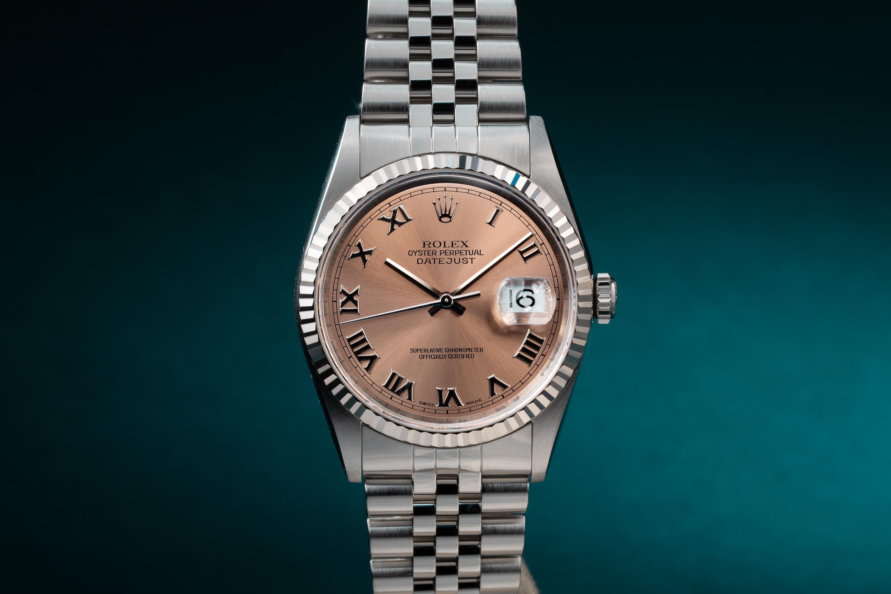 Tropical Watch 1999 Rolex DateJust 16234 Salmon Roman Numeral Dial Very well made.