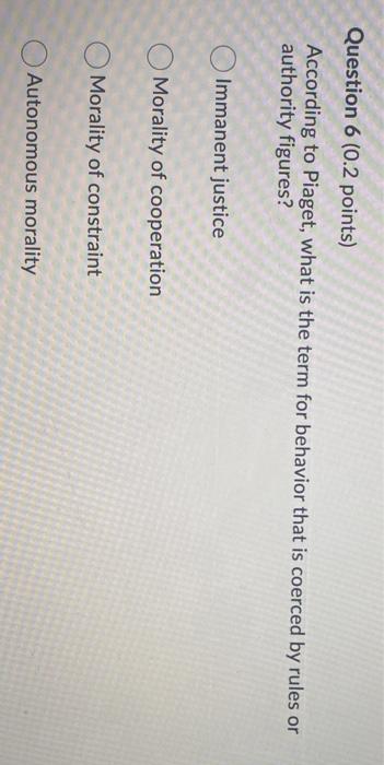 Solved Question 6 0.2 points According to Piaget what is Very well made.