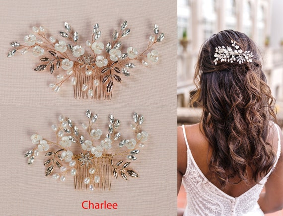 Dainty Wedding Hair Comb Bridal Comb Bridal Floral Head Piece Pearl Rhinestone Hair Clip Freshwater Pearls Charlee Hair Comb Etsy UK Very well made.