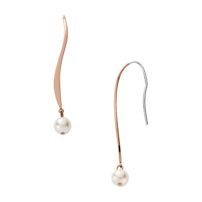 Agnethe Pearl Rose Tone Stainless Steel Drop Earrings SKJ1440791 Very well made.