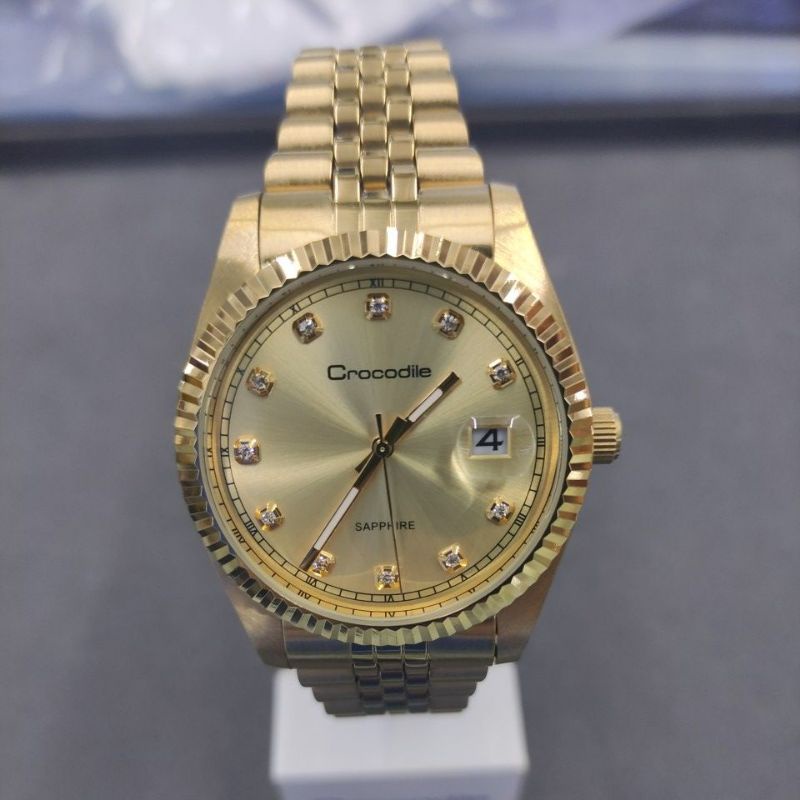 Crocodile Quartz sapphire crystal glass big date stainless steel Very well made.