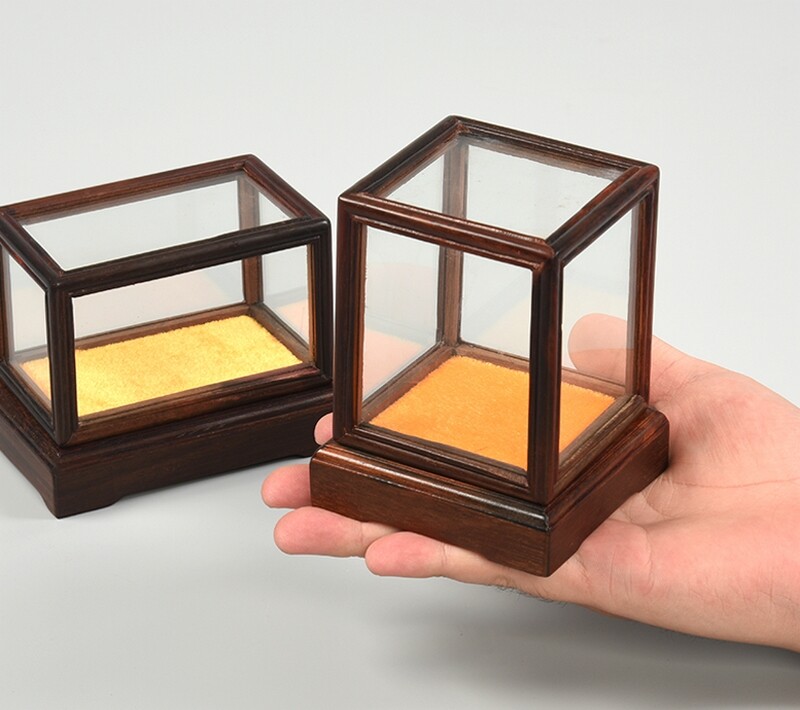 Rosewood Trim Base Display Stand Transparent Glass Doll Art Dust Cover Case eBay Very well made.