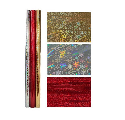 Holographic Foil Christmas Gift Wrapping Paper 3 x 2M Rolls Red Very well made.