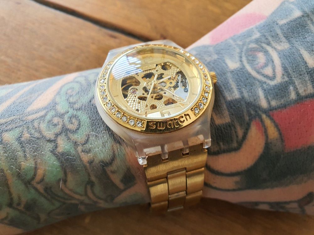 Swatch Watch SHAQ 34 GOLD SVCK4008G Swarovski Stones. Limited Very well made.