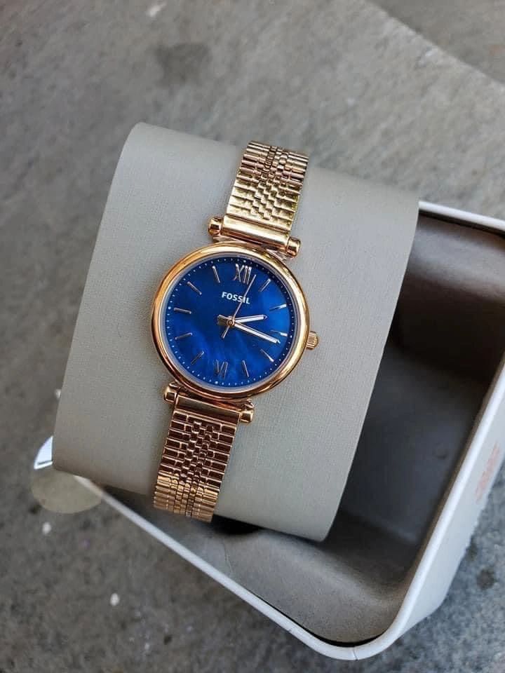 Fossil Carlie Mini Quartz Blue Mother of Pearl Dial Ladies Watch Very well made.