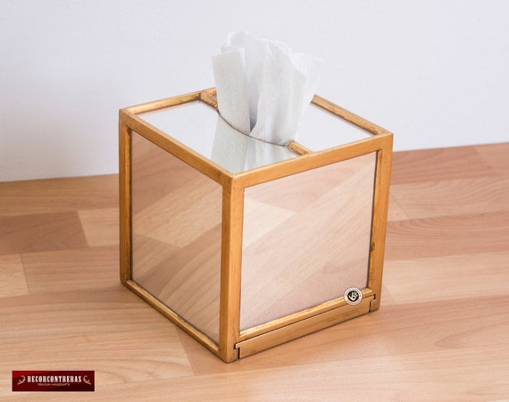 Gold Square Tissue Box Cover From Peru Handmade Crystal Mirror Tissue Box Covered With Bronze Leaf Wedding Gift shower Gift bathroom Decor Etsy UK Very well made.