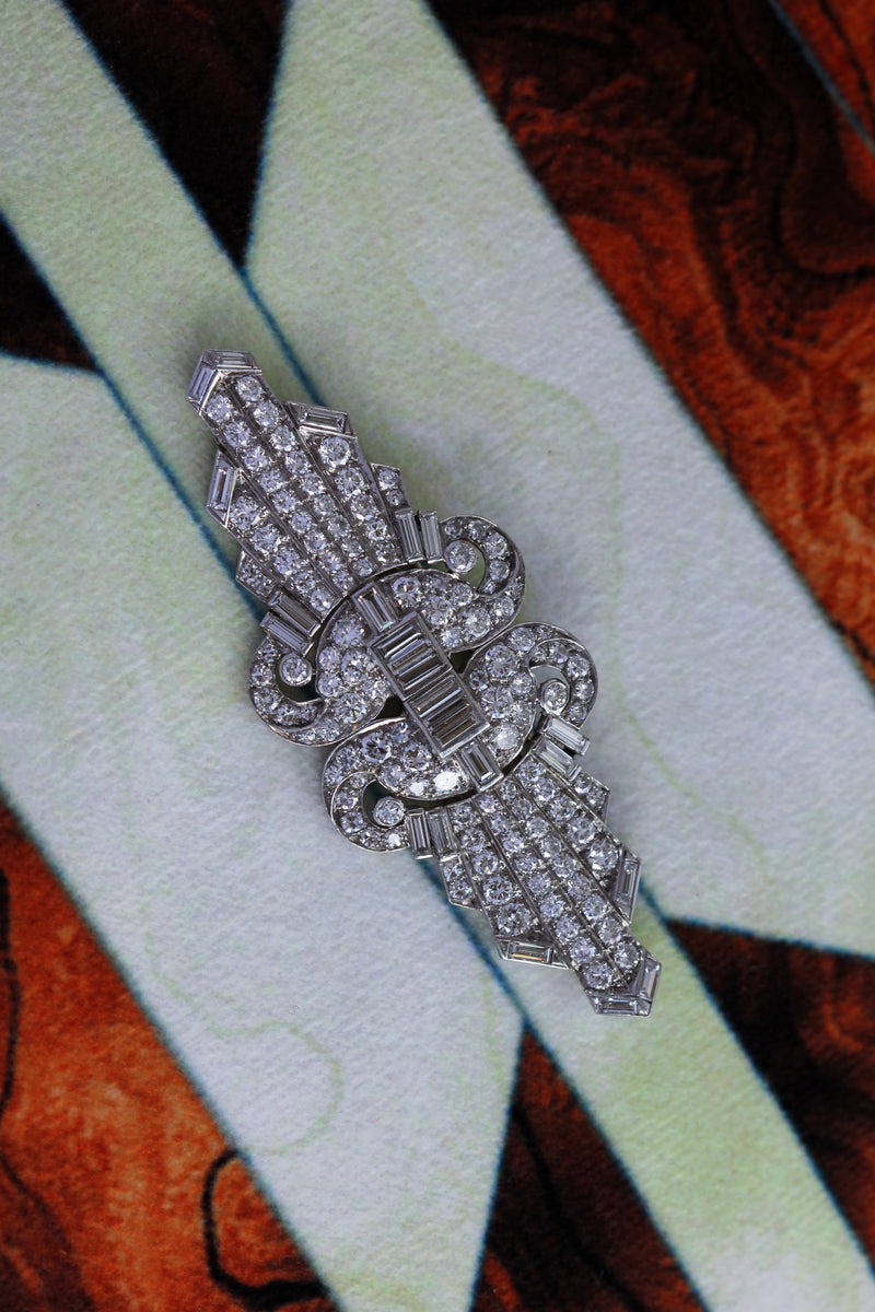 Art Deco 2.4ct Diamond Double Clip Brooch Very well made.