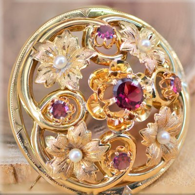 Elmwoods Auctions A VINTAGE PEARL BROOCH in 14ct yellow gold design Very well made.
