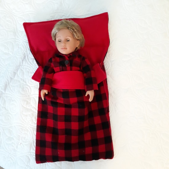 Sleeping Bag in Red black Buffalo Check Flannel and Fleece With Built in Pillow Fits American Girl Our Generation and Other 18 Inch Dolls. Etsy Australia Very well made.