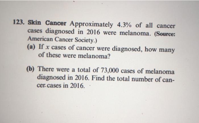 Solved 123. Skin Cancer Approximately 4.3 of all cancer Chegg Very well made.