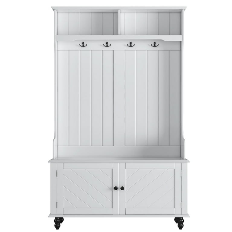 WhizMax 40 Inch Modern Hall Tree with 4 Hooks Wood Entryway Coat Hanger Storage Bench Top Open Storage Shelves Versatile 3 in 1 Entrance Hallway Coat Rack Multi Functional Lobby Tree Walmart Very well made.