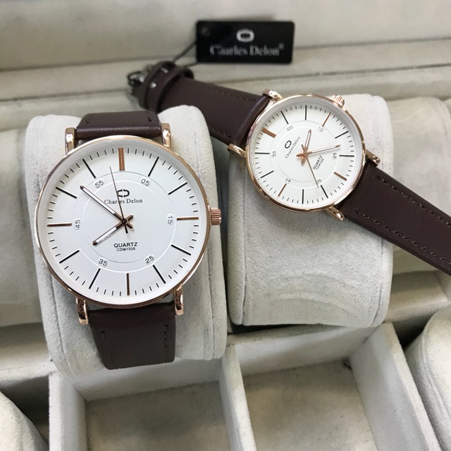 Vintage Charles Delon Quartz His Hers Set Watch Leather Strap Very well made.