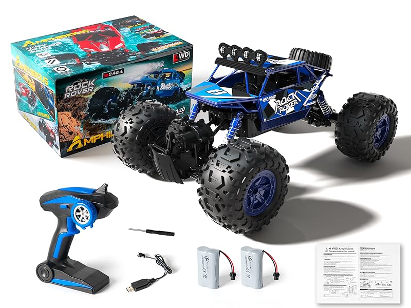 Amazon 1 10 Big Amphibious RC Truck IPX6 Waterproof 20 Km h 4x4 Off Road RC Rock Crawler RC Monster Truck with Al alloy shell LED Light 2.4GHz All Terrain RC Cars with 2 Very well made.