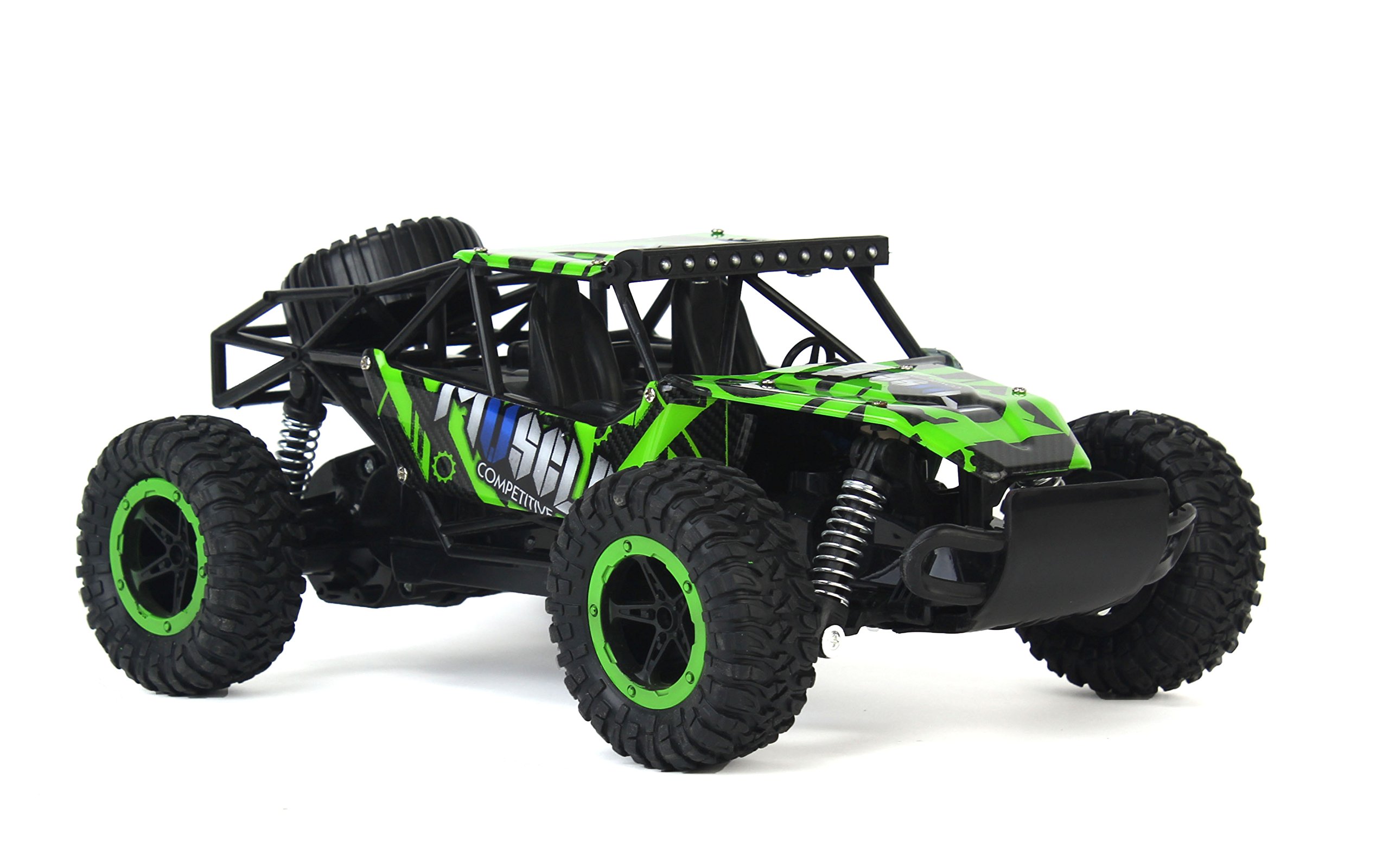 Cross Country Speed Racing Slayer Remote Control Toy Green Rally Buggy RC Car 2.4 GHz 1 16 Scale Size w Working Suspension Spring Shock Absorbers Amazon Toys Games Very well made.