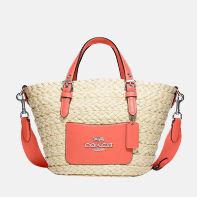 Pre owned Coach Orange Straw Leather Small Tote Bag ModeSens Very well made.