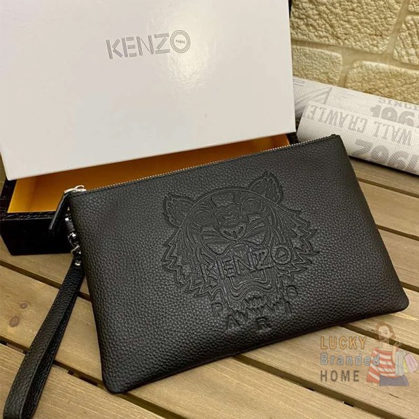 Tas KENZO Pouch Tiger Embossed Full Leather Black Clutch 100 ORIGINAL Very well made.