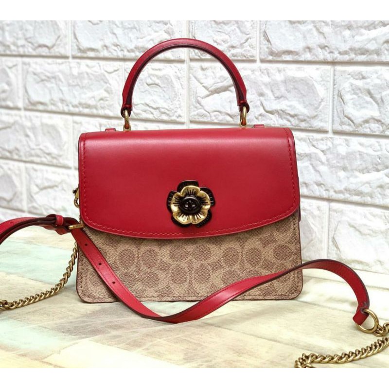 Coach Parker Top Handle With Quilting And Rivets in Red Apple new Authentic Very well made.