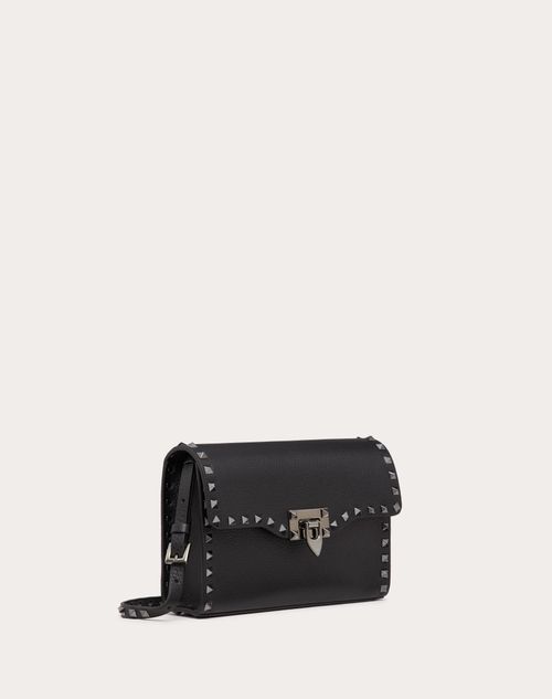 Small Rockstud Grainy Calfskin Crossbody Bag for Woman in Black Very well made.