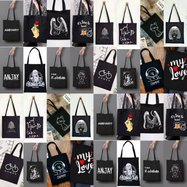 READY ANTI AIR GRATIS PASANG RESLETING TOTEBAG KPOP VIRAL MURAH KEREN TAS TOTE MOTIF HITAM Very well made.
