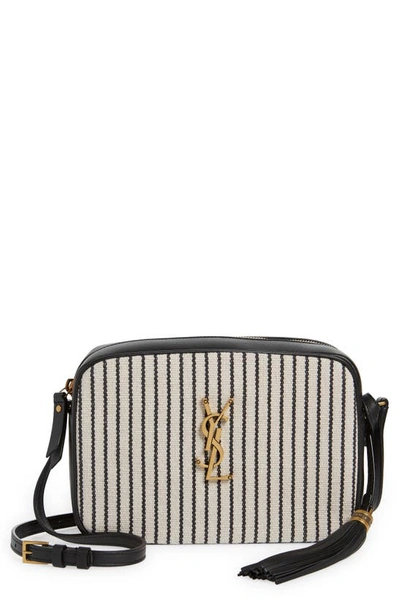 Lou Medium Ysl Striped Canvas Camera Crossbody Bag In Grey Cream Very well made.