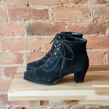 black leather boots 80s 90s vintage dark academia granny lace Poppycock Vintage Winston Salem NC Very well made.