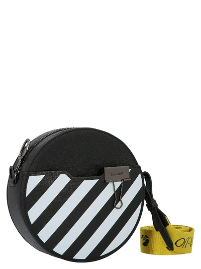 Off White Black White Diagonal Striped Leather Round Crossbody Bag Very well made.