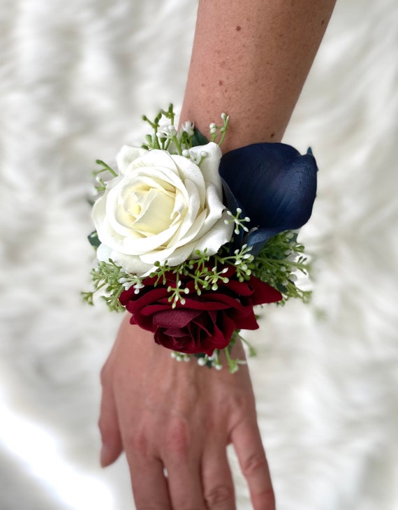 Burgundy and Navy Wrist Corsage Burgundy Corsage Rose Wrist Corsage Burgundy Corsage Navy Corsage Mother Wrist Corsage Wedding Wrist Etsy UK Very well made.