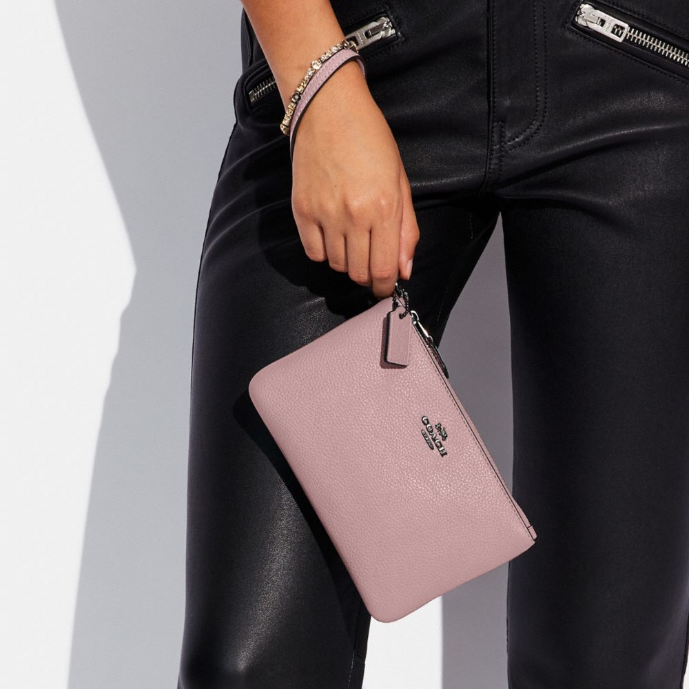 COACH Polished Pebble Leather Small Zip Top Wristlet Macy s Very well made.