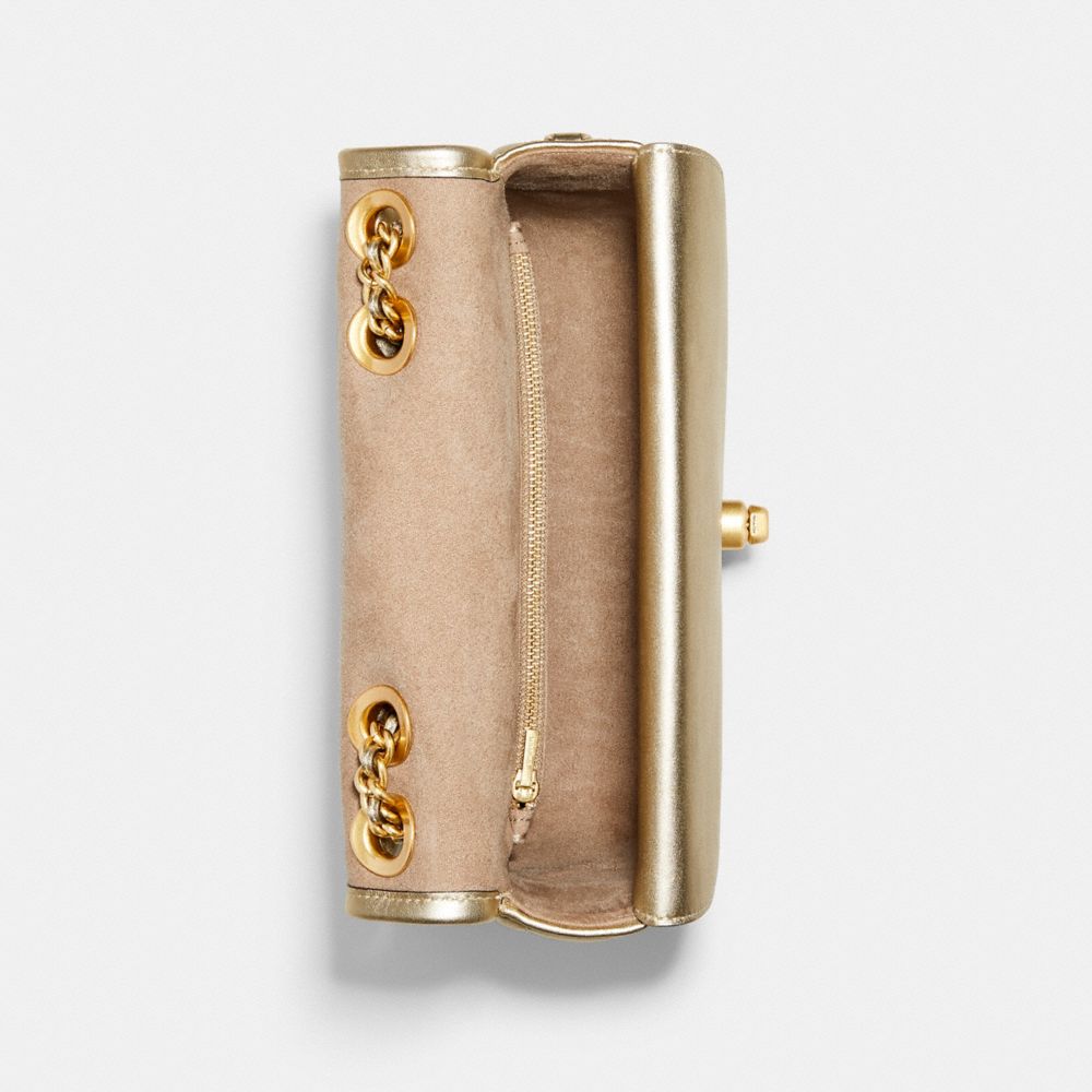 Coach Woman s Medium Signature Metallic Gold Shoulder Bag Logo Purse F17724 Bag Very well made.